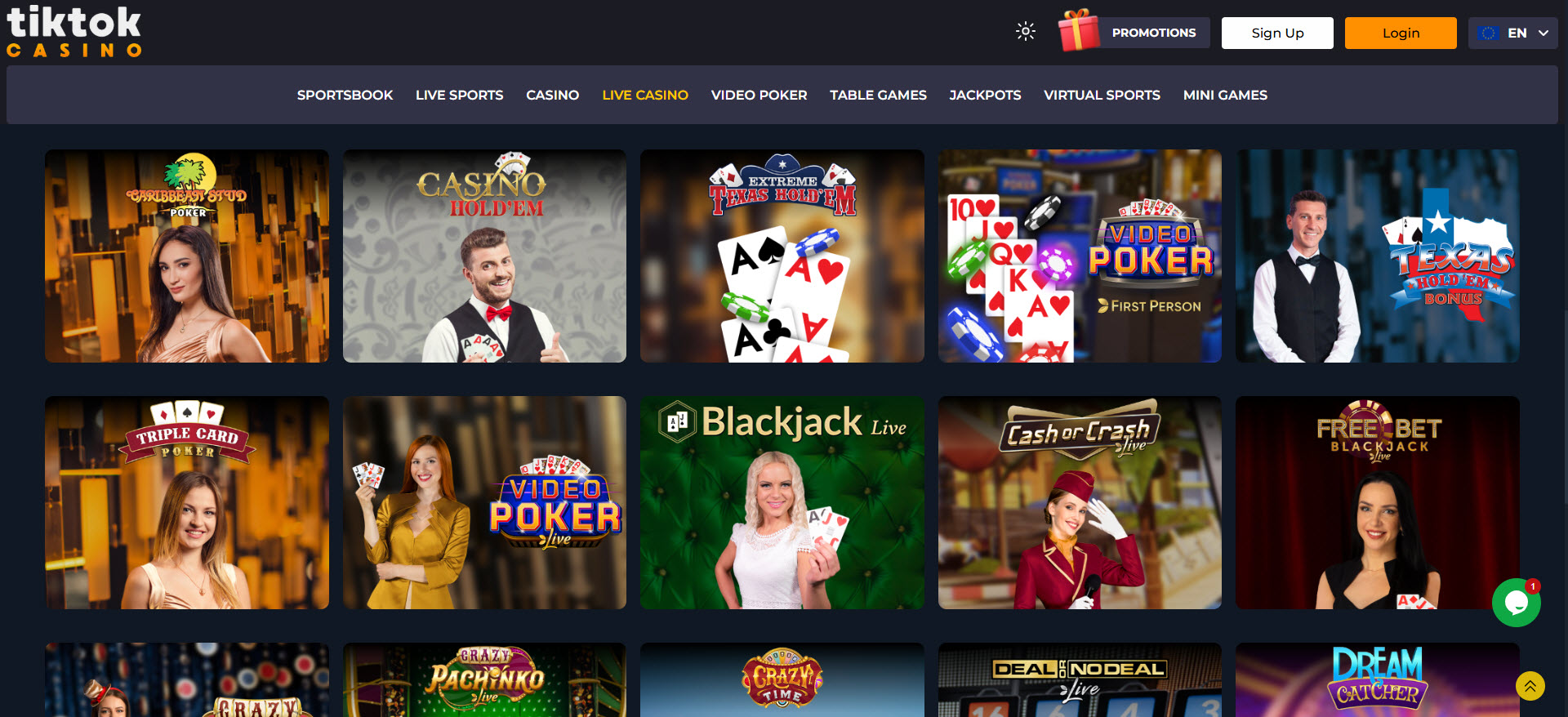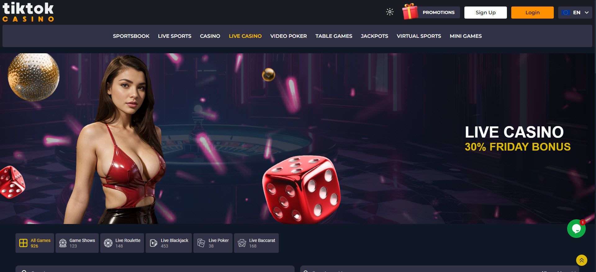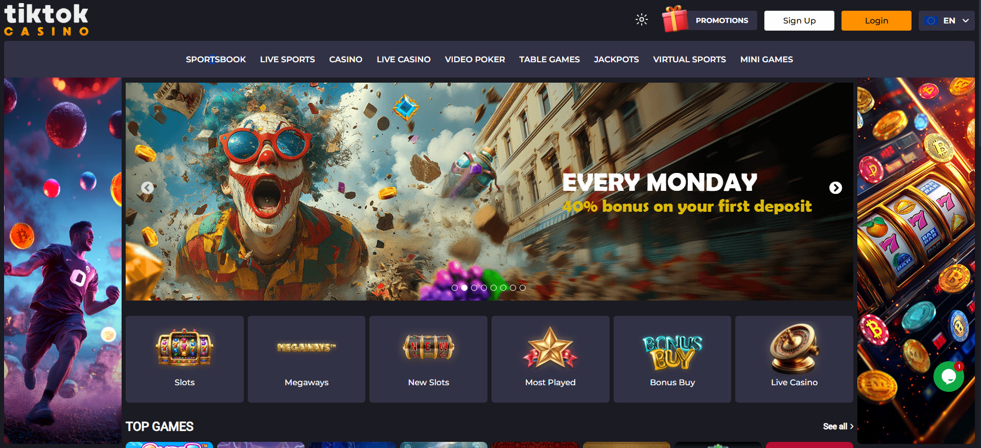 TikTokCasino.com offers a diverse portfolio of products, catering to a wide range of gambling preferences: