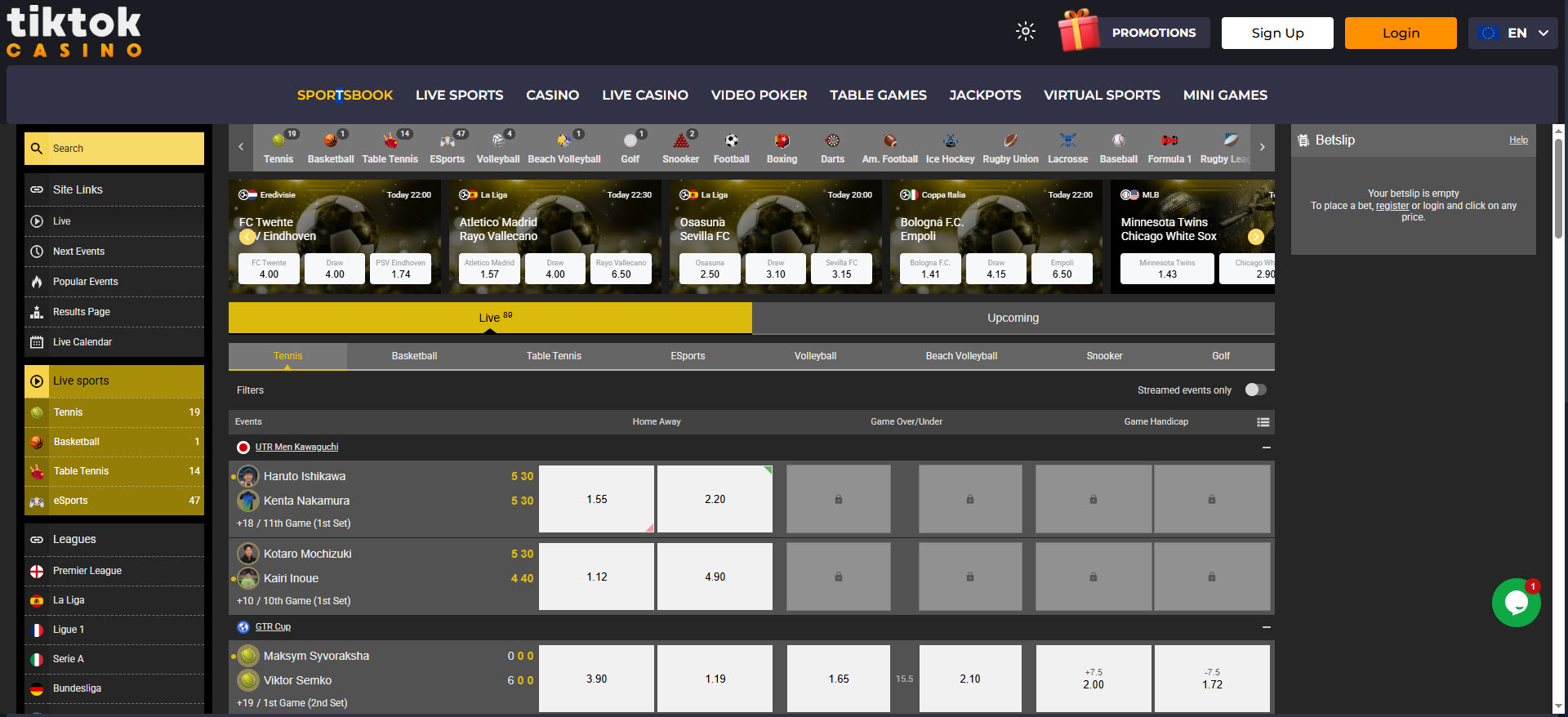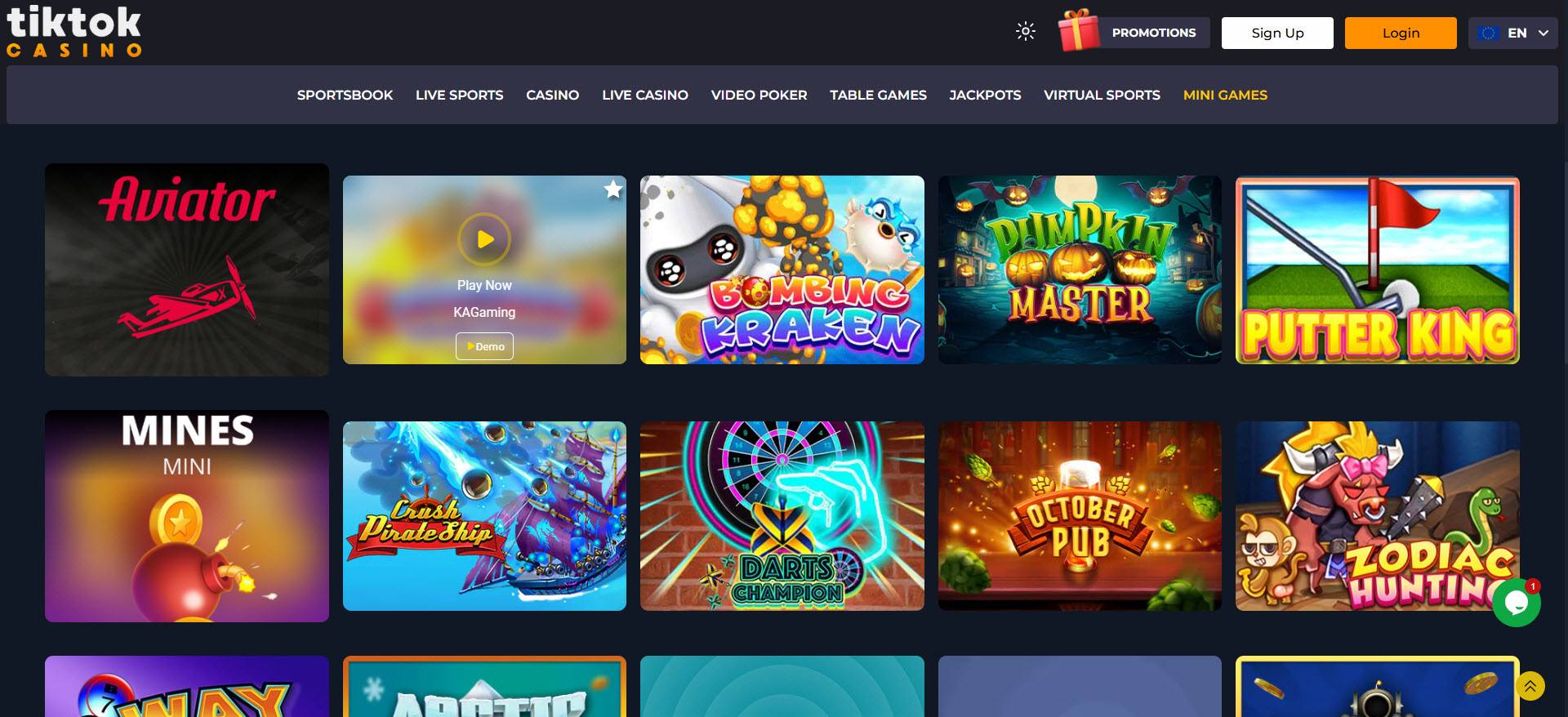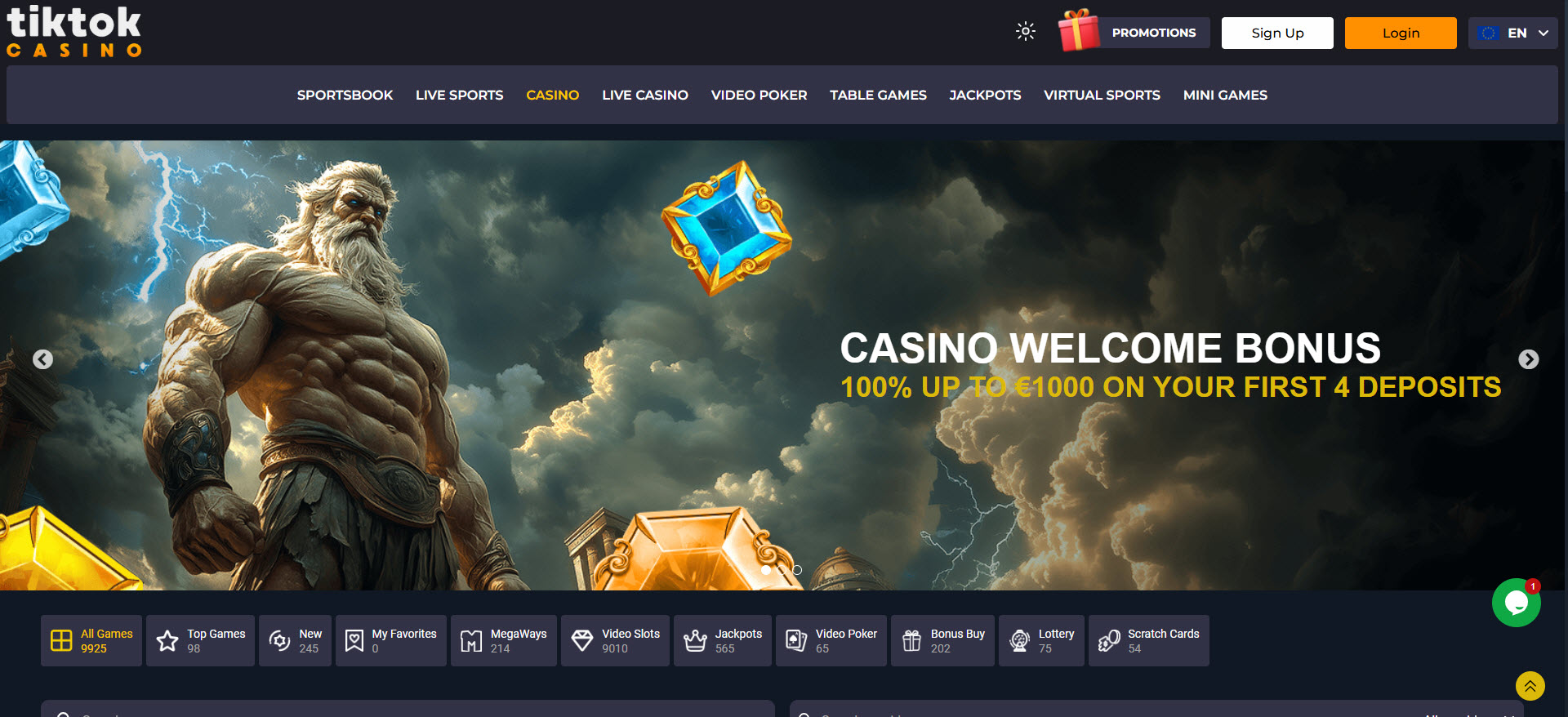 TikTokCasino.com offers a diverse portfolio of products, catering to a wide range of gambling preferences: