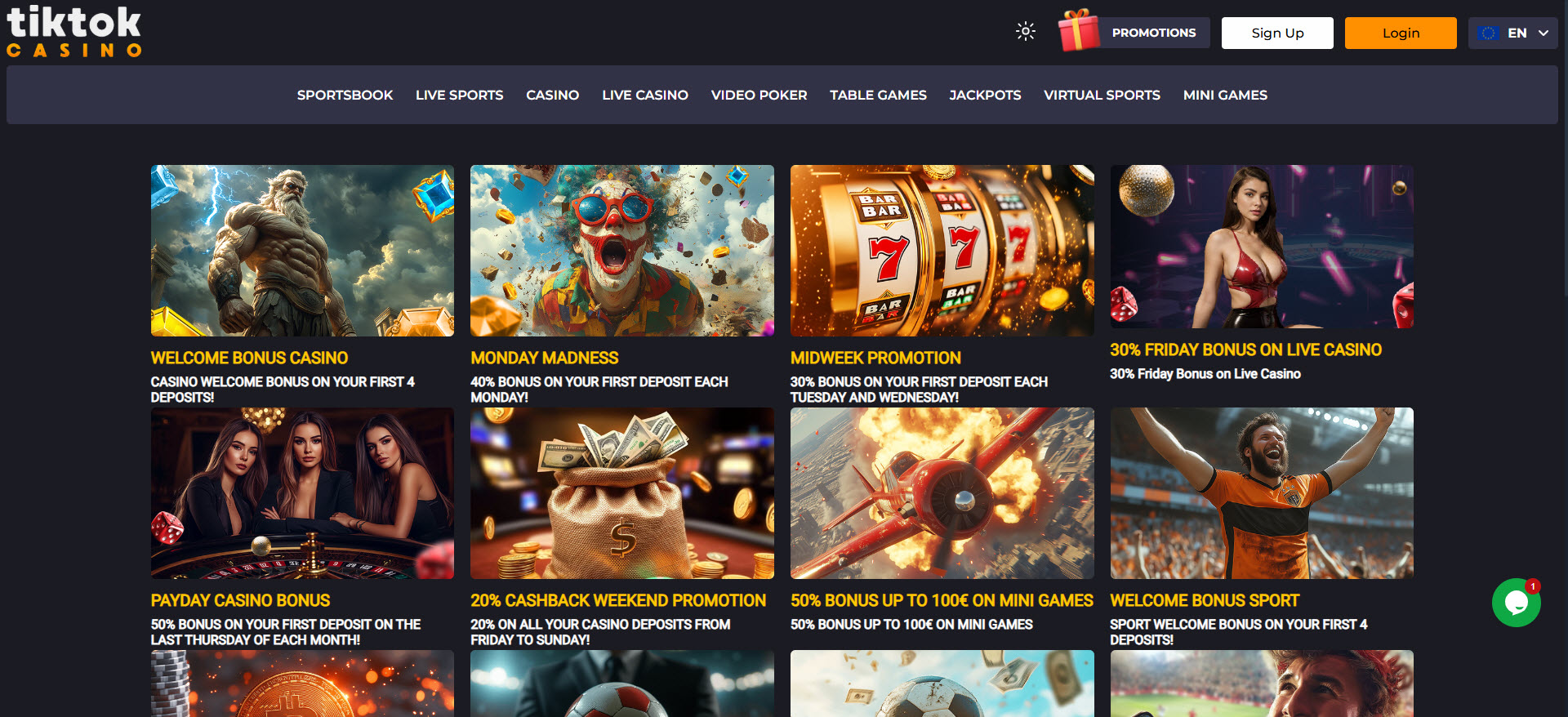 TikTokCasino.com offers a wide array of bonuses for both casino and sports betting enthusiasts, designed to enhance the gaming experience: